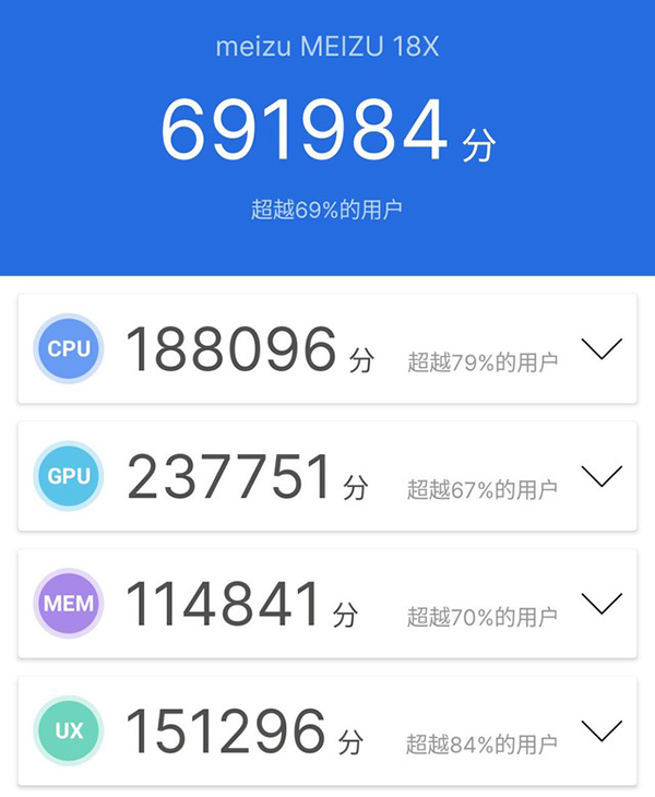 魅族 18X在安兔兔的跑分測(cè)試中,取得了69.1萬分的好成績(jī),達(dá)到了主流安卓旗艦手機(jī)得分水平。
