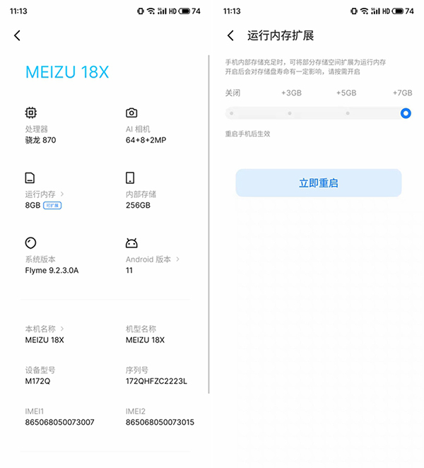 魅族18X的性能表現(xiàn)無(wú)疑是更為吸引大家關(guān)注的重點(diǎn),魅族18X搭載了高通驍龍870+UFS 3.1的主流性能配置組合,擁有8GB運(yùn)行內(nèi)存和12GB運(yùn)行內(nèi)存兩種RAM規(guī)格可供用戶選擇,同時(shí)魅族18X還支持了當(dāng)下流行的內(nèi)存拓展技術(shù),最多可以實(shí)現(xiàn)7GB的內(nèi)存拓展。