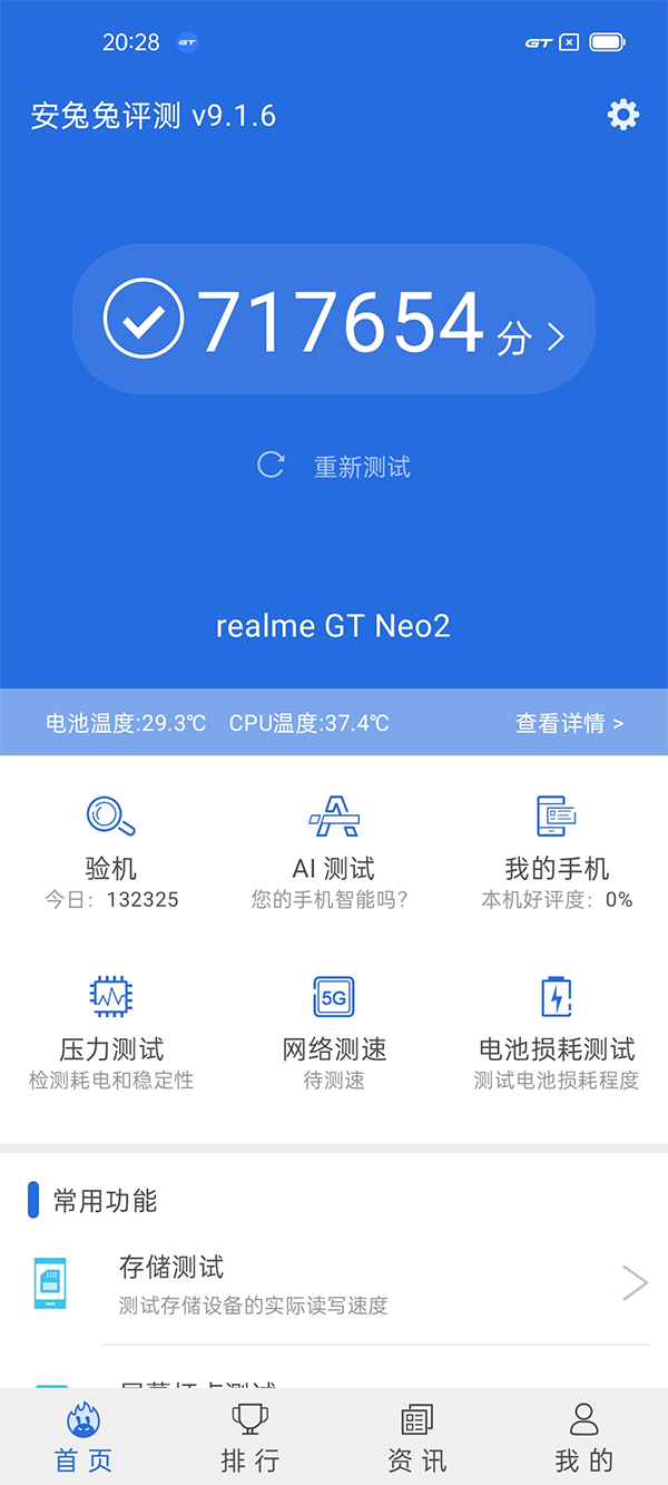 在實(shí)際的安兔兔跑分測試中,realme真我GT Neo2也是跑出了近72萬分的好成績,就這一成績來說,與絕大部分驍龍870旗艦機(jī)型持平。
