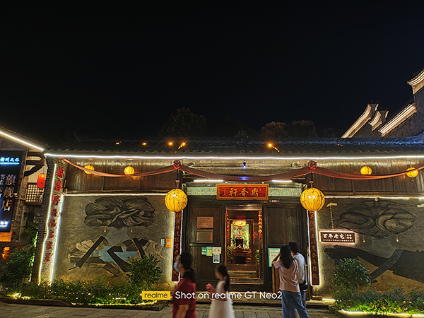 而在面對(duì)光線較弱的夜景拍攝時(shí),realme真我GT Neo2所拍攝出的樣張,整體畫(huà)面純凈感還是很到位,有著較高的進(jìn)光量加持,對(duì)于光線較弱的環(huán)境,依然能夠做到對(duì)高光和噪點(diǎn)進(jìn)行有效把控,就這一成像效果來(lái)說(shuō),同價(jià)位段內(nèi)算是高水準(zhǔn)級(jí)的表現(xiàn)。