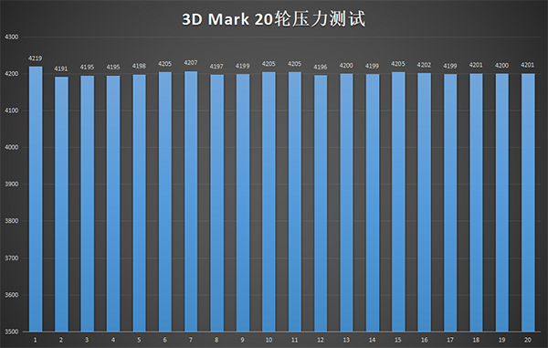 同時,我們也使用了3D Mark對真我GT Neo2進行了20輪的壓力測試,最佳分數(shù)為4219分,最低分數(shù)為4191分,穩(wěn)定性高達99.3%,表現(xiàn)十分優(yōu)秀。要知道部分搭載驍龍888處理器的手機,在這一環(huán)節(jié)的測試,會出現(xiàn)溫度過高導致無法完成20輪的壓力測試的情況。