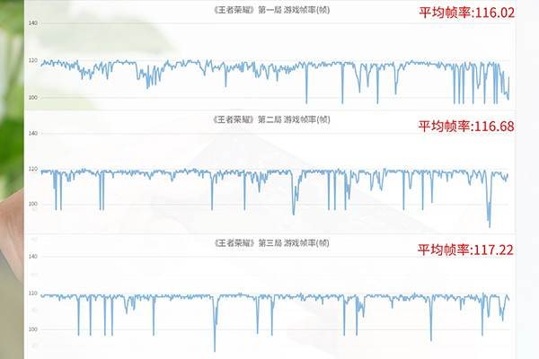 第一輪的平均游戲幀率為116.02 FPS,第二輪平均游戲幀率為116.68 FPS,第三輪平均游戲幀率為117.22 FPS。由此可見(jiàn),即便進(jìn)行多局《王者榮耀》游戲,游戲的幀率也一直保持在很穩(wěn)定的狀態(tài),并沒(méi)有因?yàn)闀r(shí)間過(guò)長(zhǎng)導(dǎo)致性能下降,長(zhǎng)時(shí)間運(yùn)行,機(jī)身的溫度也僅有小幅度的升高。