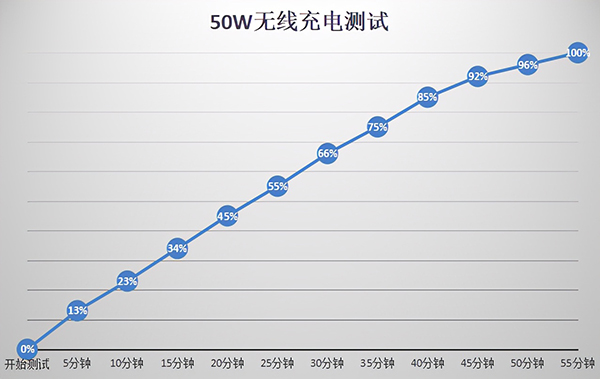 充電方面,vivo X70 Pro+支持55W有線充電、50W無(wú)線充電以及10W無(wú)線反向充電。測(cè)試結(jié)果表明,使用50W無(wú)線充電時(shí),vivo X70 Pro+55分鐘充滿電量,使用55W有線充電時(shí),50分鐘充滿電量。