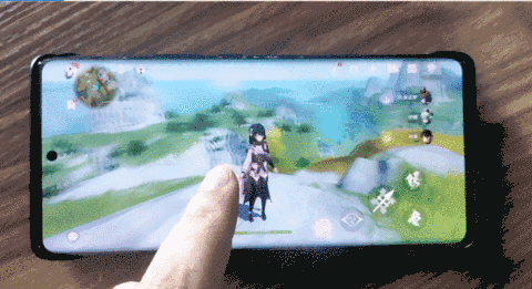 我們用某款手機的960fps慢動作來拍攝vivo X70 Pro+游戲插幀后的效果,并使用只有60Hz刷新率的iPhone 11游戲畫面作為對比,兩款手機的游戲設(shè)置均為最低、幀數(shù)手動調(diào)整至60fps,關(guān)閉動態(tài)模糊。使用角色在稻妻城外側(cè)的傳送點附近進行跑步,注意觀察角色的左腳的移動距離。