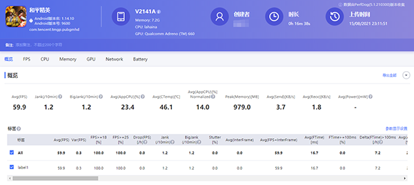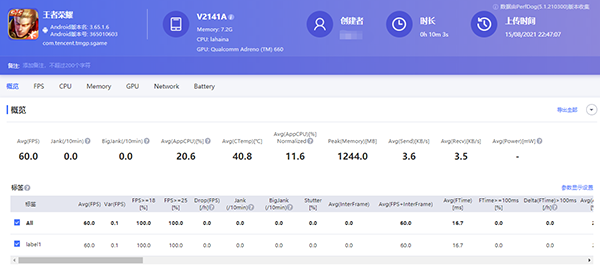 在測(cè)試《王者榮耀》的幀率時(shí),我發(fā)現(xiàn)它的平均幀率直接達(dá)到了60幀的滿幀狀態(tài),也就是說(shuō)iQOO 8 Pro在游戲過(guò)程中沒(méi)有出現(xiàn)過(guò)掉幀現(xiàn)象,這一點(diǎn)真的很難得。值得一提的是,這款手機(jī)還加入了全新的VRS 可變分辨率渲染技術(shù),能夠在不影響游戲畫(huà)面質(zhì)量的情況下提升游戲幀率穩(wěn)定性。雖然目前該技術(shù)僅支持《戰(zhàn)神遺跡》 、《天涯明月刀》、《天諭》三款游戲,但接下來(lái)官方會(huì)陸續(xù)支持更多游戲,大家可以期待一下。