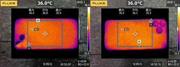 在游戲開始前,iPhone 12 Pro Max與iPhone 13 Pro Max的背板溫度均為36℃。