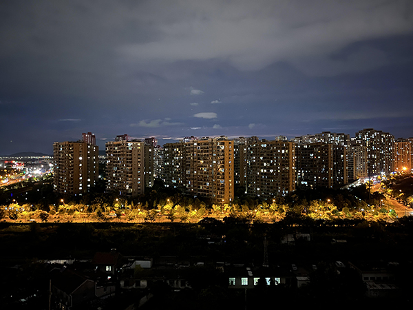 下圖是iPhone 13 mini在晚上18:30拍攝直出的照片,比較直觀地反映了眼睛看到的場景,這種風(fēng)格和現(xiàn)在安卓旗艦級夜晚拍攝的效果大不一樣。