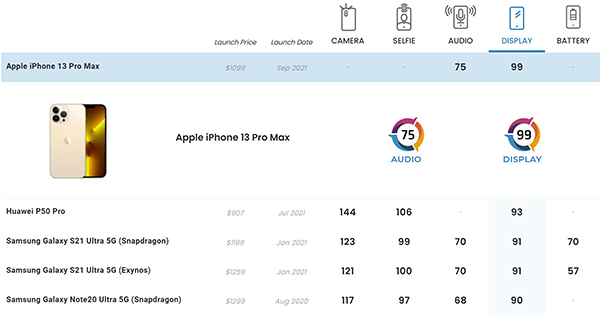 而近日,DXO又對iPhone 13 Pro Max進行了兩項評測,分別是屏幕評測和音頻評測。