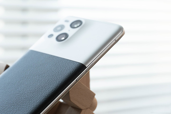 這一次的OPPO Find X3 Pro攝影師版雖然造型相比普通版沒有改變,但是通過不同材質(zhì)的引入這臺攝影師版Find X3 Pro還是有了新的設(shè)計語言,通過玻璃模擬的銀色金屬質(zhì)感(在查資料之前我真的以為這就是金屬來的)搭配深色的荔枝皮紋,讓背部的視覺重點從攝像模組轉(zhuǎn)移到了材質(zhì)的對比上,我個人還是非常喜歡這種層次感的。