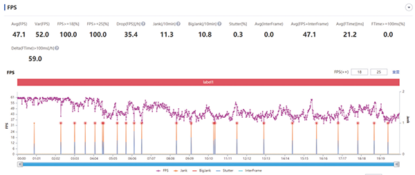 《原神》相比《王者榮耀》來說對性能的要求更高,尤其是像我們這樣完全沒有額外冷卻裝備的情況下進行游戲,不過在realme真我GT Neo2上,即便開啟了高畫質(zhì)和高幀率模式,《原神》的平均幀率也能達到47.1fps,游戲過程中稍有頓挫感,但整體表現(xiàn)依舊相當不錯。