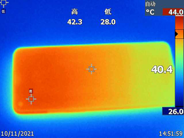 “853”組合的強大性能,對此并不感到意外,我們更多關注的是一加9RT的散熱表現(xiàn),這也是許多消費者最為關心的問題。在游戲實測中,一加9RT的散熱效果讓我們倍感驚喜,一加9RT機身正反面溫度并不高,即使是機身溫度最高的部分——機身正面挖孔處,溫度也不過42.3℃。想必這也和此次一加9RT重新設計的空間散熱系統(tǒng)有關,官方宣稱,一加9RT的總散熱面積是一加有史以來最大的,達19067.44mm2,其中的VC面積比一加9增加足足59%。