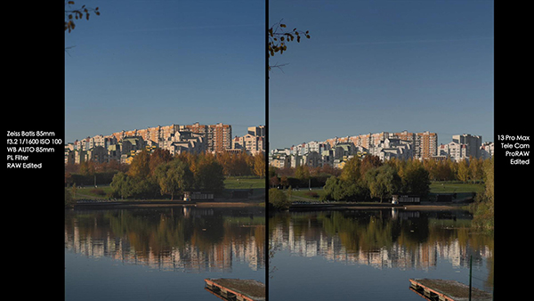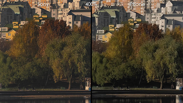 第三組照片這次更換成了風(fēng)景照,從整體的效果來看,索尼A7SIII和iPhone 13 Pro Max之間的區(qū)別還是十分接近的,索尼A7SIII拍攝這張照片的參數(shù)為,光圈F/3.2,快門1/1600,iSO依然是100。不過由于鏡頭的不同,所以左上角的樹枝索尼A7SIII拍攝出來是虛化的,iPhone 13 Pro Max拍攝出來則很清晰。
