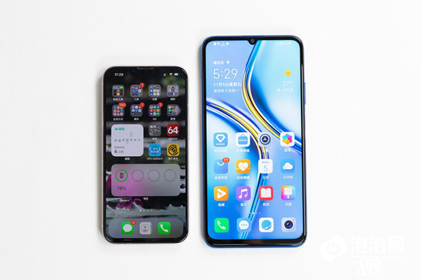 下面為榮耀X30 Max和6.1英寸iPhone 13的對(duì)比圖,可以看到兩者的視覺效果區(qū)別較大,榮耀X30 Max能夠顯示的區(qū)域大很多。