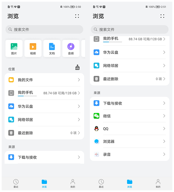 在日常使用中,榮耀X30i會給用戶帶來很多便捷的體驗,比如文件管理,將手機(jī)內(nèi)的資料可以分門別類的進(jìn)行管理,微信、瀏覽器、QQ的文件內(nèi)容都可以在專門的列表中找到。如果開啟了云盤服務(wù),也可以通過文件管理直接查看云端的空間,讓手機(jī)管理變得更加的方便。