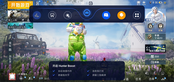 在游戲的過程中,我還發(fā)現(xiàn)了一個(gè)隱藏功能,從屏幕的上方向下拉,可以快速開啟Hunter Boost,開啟后,系統(tǒng)會(huì)自動(dòng)自動(dòng)清理內(nèi)存,消息免打擾,屏蔽指關(guān)節(jié),屏蔽三指截屏,可以暢快的體驗(yàn)游戲,不被打擾,也誤操作。