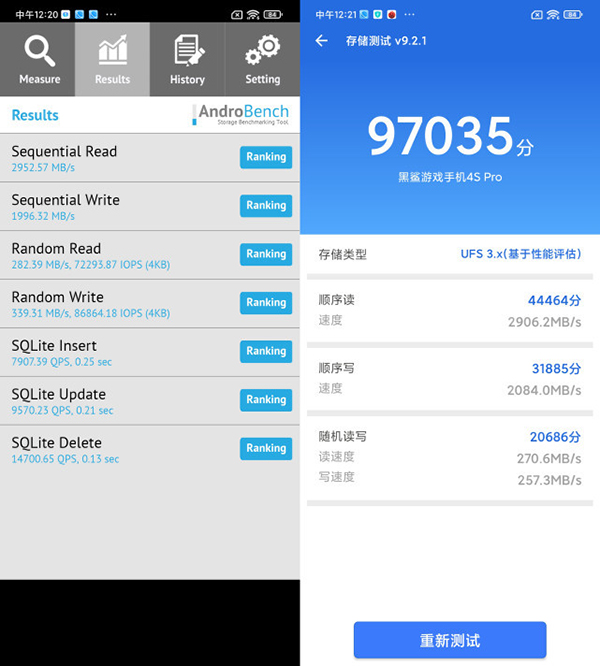 仔細(xì)看跑分成績不難發(fā)現(xiàn),黑鯊4S Pro之所以拉開其他驍龍888 Plus產(chǎn)品一截,最大的加分項(xiàng)還是在存儲(chǔ)方面。黑鯊4S Pro搭載了SSD磁盤陣列技術(shù),將SSD固態(tài)和UFS3.1通過raid磁盤陣列組合在一起,再進(jìn)行存儲(chǔ)讀寫。磁盤讀寫速度幾乎要比傳統(tǒng)的UFS 3.1設(shè)備快一倍。