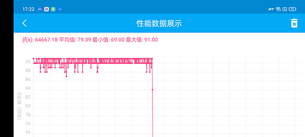 手機(jī)開啟GT模式的情況下,王者榮耀畫質(zhì)全部開到最高,打開90Hz高幀率。一句游戲下來,平均幀率為79。