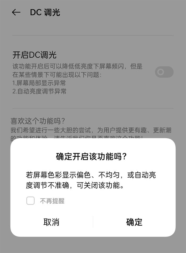 今年推出的很多手機大多是PWM調(diào)光,這對部分頻閃敏感的用戶來說并不友好,但讓人驚喜的是,此次真我GT Neo2T在系統(tǒng)的realme實驗室里還藏有DC調(diào)光的開關(guān),開啟之后能降低低亮度下屏幕頻閃的問題,但是可能會出現(xiàn)屏幕局部顯示異常和自動亮度調(diào)節(jié)異常,所以這需要各位潮玩?zhèn)冏孕姓遄谩?
