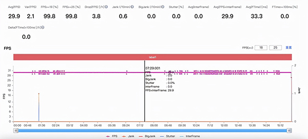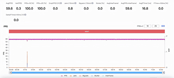 在高分辨率、高幀率條件下運行《王者榮耀》游戲時,vivo Y76s的游戲幀率曲線整體較為平緩,平均幀率達(dá)59.6幀;以高清+高幀率模式運行《和平精英》時平均幀率為29.9幀??傮w而言,vivo Y76s能夠在“雙高”條件下流暢運行《王者榮耀》與《和平精英》兩款主流游戲。