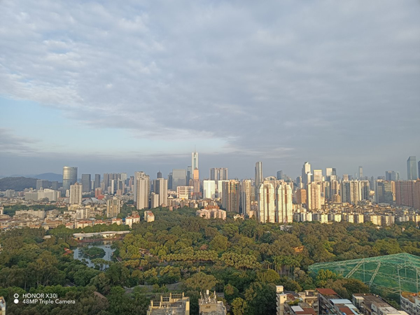 幸好榮耀在影像算法方面一直都有著優(yōu)秀的水準(zhǔn),實(shí)際的成像畫質(zhì)還是說得過去的。在光線不錯(cuò)的傍晚以默認(rèn)的拍照風(fēng)格進(jìn)行拍攝,可以看到它的整體色彩表現(xiàn)還是比較不錯(cuò)的,能很好地還原這個(gè)時(shí)間段的光彩,天際的云彩看起來還是挺好看的。