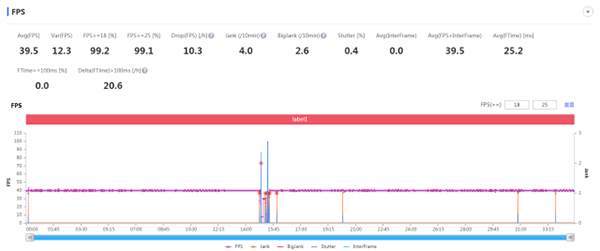和平精英-超高幀率+均衡畫(huà)質(zhì)模式,游戲35分鐘,平均幀率為39.5fps。