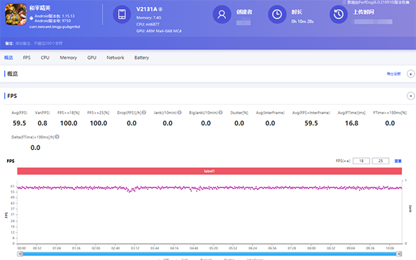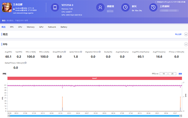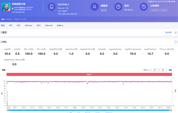 游戲方面,筆者選擇的是《英雄聯(lián)盟手游》《王者榮耀》《和平精英》三款手游。首先看幀率表現(xiàn),經(jīng)測(cè)試《英雄聯(lián)盟手游》的平均幀率為59.6幀,波動(dòng)為0.8幀;《王者榮耀》的平均幀率為60.1幀,波動(dòng)為0.2幀;《和平精英》的平均幀率為59.5幀,波動(dòng)為0.8幀。從幀率測(cè)試圖可以看出,iQOO Z5x可以在60幀左右流暢運(yùn)行這三款游戲。