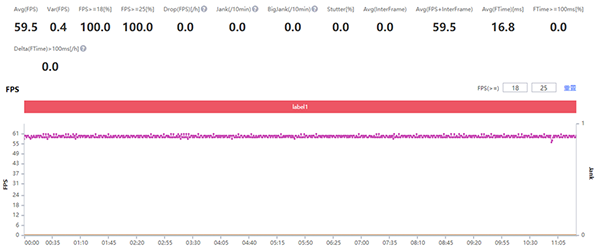 我們也測(cè)試了《和平精英》,在流暢畫質(zhì)下,Redmi Note11 Pro+可以以60幀的幀率運(yùn)行,在游戲過程中畫面流暢穩(wěn)定,平均幀率可以達(dá)到59.5FPS。