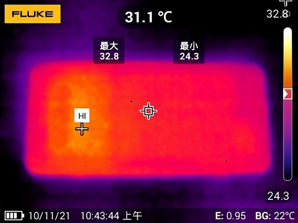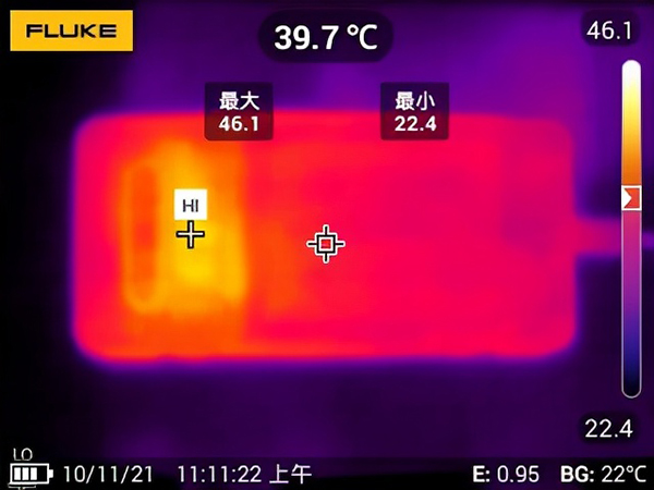 在25℃室溫環(huán)境下,游戲前后的溫控變化也在可接受范圍內(nèi),在30分鐘高幀“吃雞”后,最大溫度達到了46.1℃,中框有發(fā)熱情況,但不影響握持手感。當然,如果你的要求較高,筆者更建議大家最好還是搭配散熱背夾一同使用,體驗會更好。