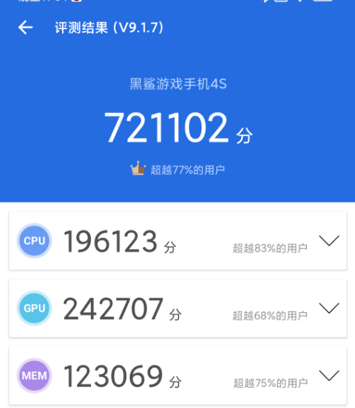 在開啟之后,黑鯊4S的運(yùn)行內(nèi)存會在原本12G的基礎(chǔ)上增加3GB的虛擬內(nèi)存,這一部分由存儲空間轉(zhuǎn)化而來的運(yùn)行內(nèi)存可以在手機(jī)高負(fù)載運(yùn)行下派上用場:最直接的改變就體現(xiàn)在黑鯊4S的安兔兔跑分上,在開啟之后,原本70萬的跑分,立竿見影地提升至72萬分。