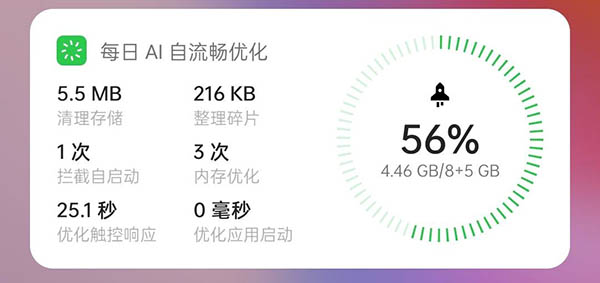 游戲之外,ColorOS12系統(tǒng)還帶來了36個月流暢雙引擎,由量子動畫引擎3.0和AI自流暢引擎2.0組成,據(jù)官方資料,基于AI自流暢引擎2.0,手機的內(nèi)存占用量減少30%,后臺電量消耗減少20%,手機續(xù)航平均提升12%,同時還帶來了36個月的流暢護航。