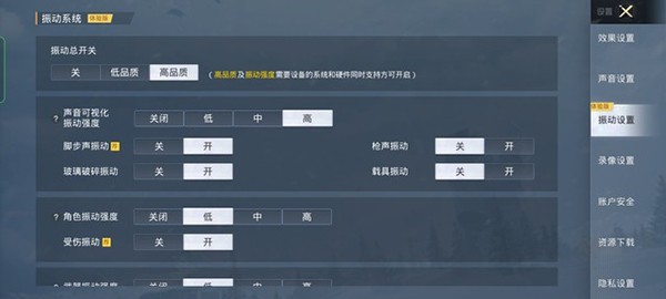 《和平精英》振動(dòng)設(shè)置可以對(duì)腳步聲、槍聲、載具等一系列操作的振感反饋進(jìn)行定制
