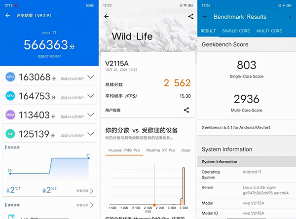 根據(jù)我們的實測結(jié)果,搭載驍龍778G處理器的vivo T1安兔兔跑分成績?yōu)?66363分;3DMark成績?yōu)?562分;Geekbench 5單核成績803分,多核成績2936分。整體表現(xiàn)達(dá)到一款驍龍778G處理器手機應(yīng)有的水準(zhǔn),完全能夠滿足日常軟件和大型游戲運行等需求。