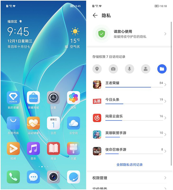 榮耀60 Pro搭載最新的Magic UI 5.0系統(tǒng)界面保持了一貫的設(shè)計(jì)風(fēng)格,沒有特別大變化,老用戶很容易就能適應(yīng)。系統(tǒng)在隱私安全方面進(jìn)行了全方位升級(jí)。