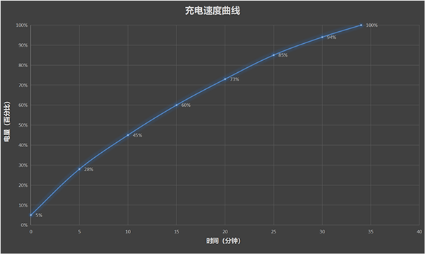 榮耀60還支持66W智慧超級快充,我們從5%電量開始充電,實測可在15分鐘就充至60%,只需34分鐘就充滿了,比官方的理論標(biāo)準(zhǔn)還要好一些。