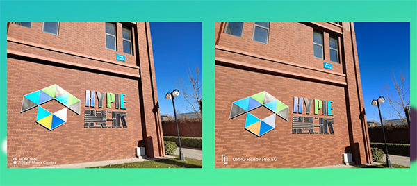 實際成像樣張在白天的時候還算不錯,沒有明顯的硬傷,如果拉來同樣主打線下OPPO Reno7 Pro進行對比,兩者在成像風格上略有不同,但在某些特定場景下,榮耀60的動態(tài)范圍要更好,OPPO這邊要更暗一些。