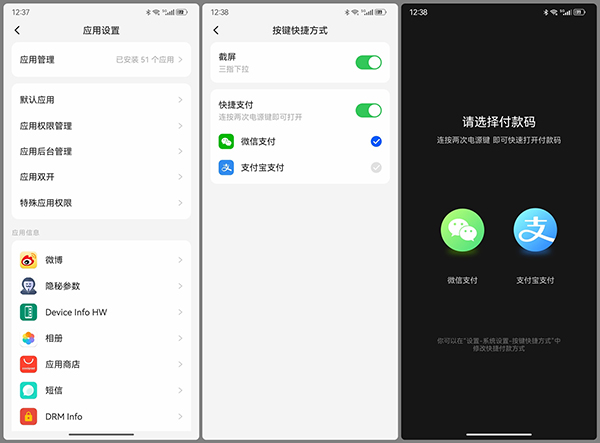 雙擊電源鍵留給了付款碼,線下用戶可能會(huì)比較受用