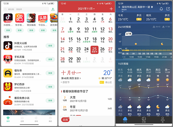 應(yīng)用商店、日歷、天氣
