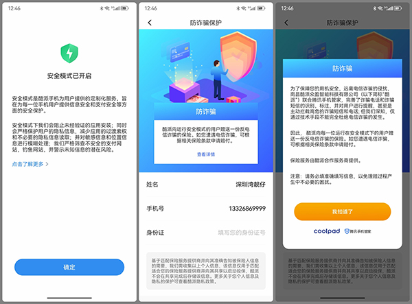 同樣新鮮的“好文明”,是酷派COOL 20 Pro自帶反電信詐騙保險(xiǎn)的“賬戶險(xiǎn)”,由酷派提供,安全模式下被電信詐騙,一經(jīng)立案,最高獲賠5萬(wàn)元。
