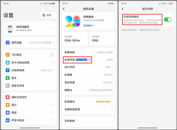 酷派COOL 20 Pro搭載新的COOLOS 2.0系統(tǒng),顯著特征就是簡(jiǎn)潔,比亡于2020年的氫OS還要簡(jiǎn)潔,大部分設(shè)置頁(yè)面都不會(huì)超過(guò)一頁(yè),基本不需要額外滾動(dòng)頁(yè)面。系統(tǒng)保留了通知欄流量顯示、通話錄音等國(guó)產(chǎn)ROM必備功能,也有流行的內(nèi)存拓展。