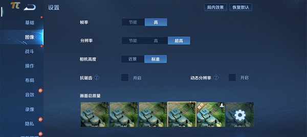 作為知名度最高的MOBA類國產(chǎn)手游《王者榮耀》,我們把幀率設(shè)置為高,分辨率設(shè)置為超高。
