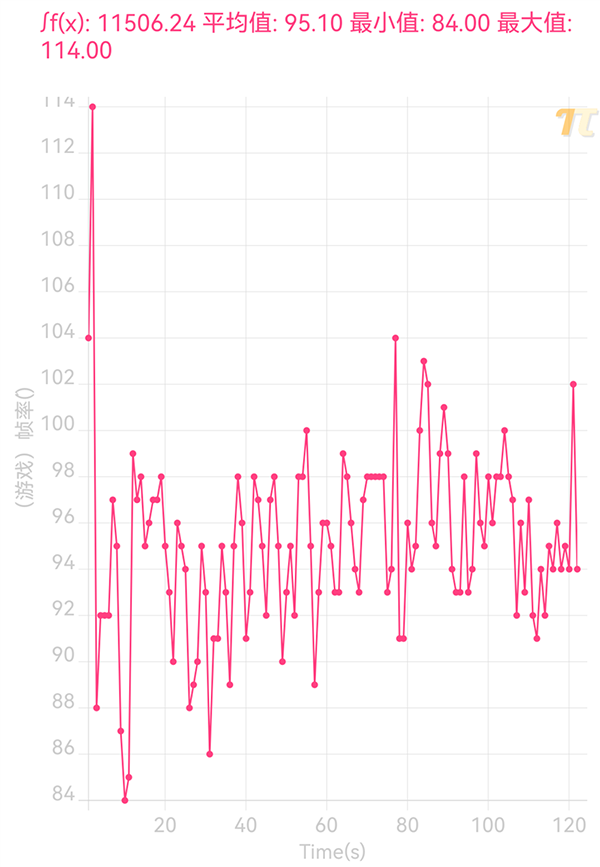 在《QQ飛車》游戲過程中,除去開局時導(dǎo)致的幀率波動,游戲內(nèi)平均幀率為95幀,游戲體驗操作跟手,畫面響應(yīng)及時。