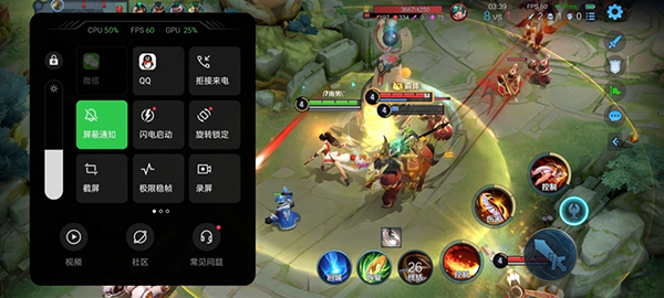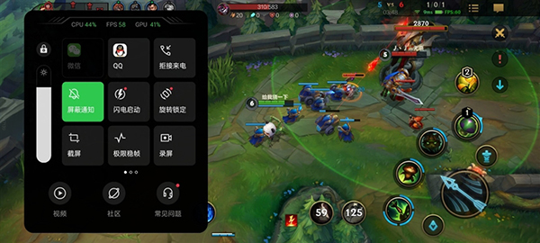 與《王者榮耀》相同,我們在《英雄聯(lián)盟手游版》中依舊設置了最高畫質和真高幀率,在游戲的對線期,畫面玩家較少,幀率保持在60幀左右,CPU占用44%,GPU占用41%。