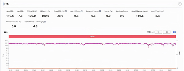 可以看到120Hz刷新率模式特效全開的王者榮耀,游戲運(yùn)行的幀率一直都是很穩(wěn)的,榮耀手機(jī)的技術(shù)確實(shí)夠厲害。