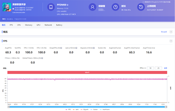 在《英雄聯(lián)盟手游》的實(shí)測(cè)中,我們將游戲畫面特效全開進(jìn)行游玩,同步記錄OPPO Reno7 Pro的幀數(shù)表現(xiàn)。軟件記錄到的平均幀數(shù)為60.3幀,游戲全程幀數(shù)幾乎沒有什么波動(dòng),畫面表現(xiàn)相當(dāng)穩(wěn)定流暢。