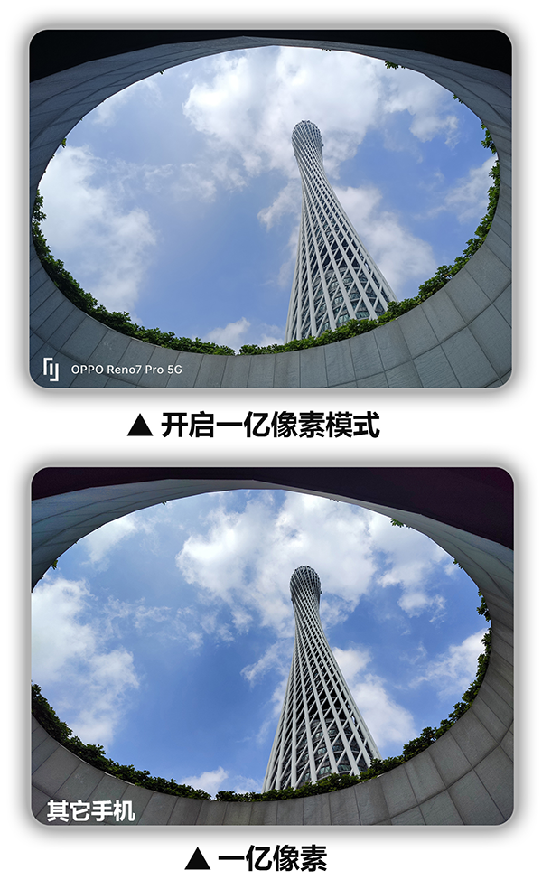 在大光比環(huán)境下,這兩臺手機的表現(xiàn)也是非常不錯,從下面的樣張,我們就可以看到兩張照片都保持主體的清晰度,人物形象都很清晰。開啟高清模式后,OPPO Reno7 Pro可以在軟件層面實現(xiàn)一億像素,這樣放大后看,遠處建筑細節(jié)還是可以的,可以說跟一億像素的成像不相上下,不知道大家更喜歡哪一邊呢?