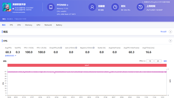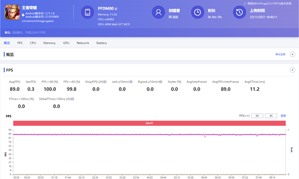 在另一款熱門(mén)的MOBA手游《王者榮耀》里面,Reno7 Pro已經(jīng)支持了90幀的高幀率模式,并且發(fā)揮同樣非常穩(wěn)定,幾乎全程保持一條直線。