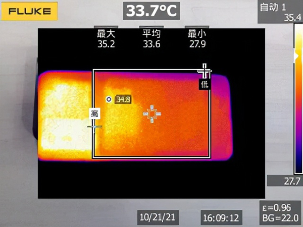 游戲測(cè)試后機(jī)身平均溫度為33.6攝氏度