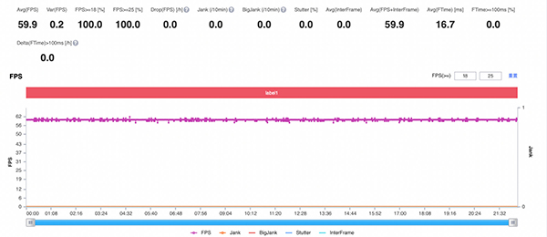 可以看出,60fps幀模式的《王者榮耀》(更高幀率的優(yōu)化還未完結),摩托羅拉edge X30平均幀率能達到61.4;60fps模式的《和平精英》,摩托羅拉edge X30平均幀率能達到59.9,這個表現已經非常不錯。不過也可以看到,只要處理器一調用超大核和大核,溫度會立馬上升,幀率受影響會突降,這應該是未來需著重優(yōu)化的地方。另外據測試,20分鐘的持續(xù)游戲,機身溫度手感一直是溫溫的,沒有出現局部過熱的情況,這應該就是驍龍8 Gen 1功耗優(yōu)勢和Moto團隊優(yōu)化實力多重作用效果。