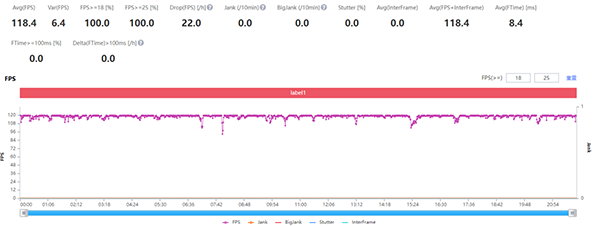 開啟該模式后,榮耀60在一局游戲當(dāng)中可以跑出118.4幀平均幀率,最低幀數(shù)也有98并且沒(méi)有出現(xiàn)卡頓,表現(xiàn)比較出色。