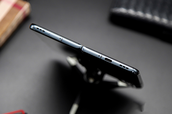 在Find X底部,OPPO為其設(shè)計了雙揚聲器接口,無論是哪種形態(tài)、哪種握持下,都可以保證聲音輸出不被遮擋,游戲、看劇等場景下非常友好。其中間為USB-C充電接口。